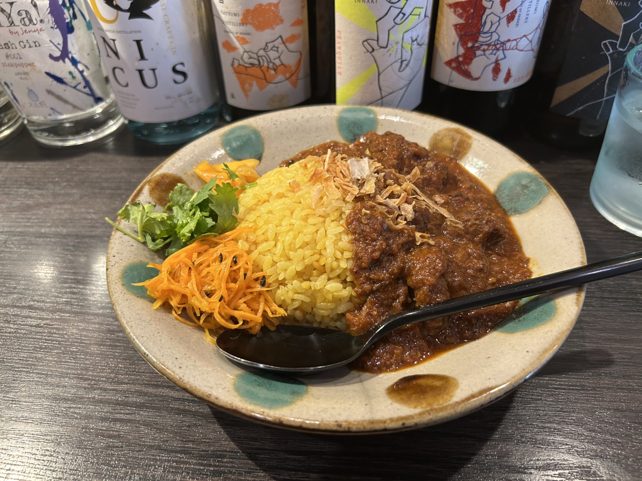 - NICO 25 TO GOは、緑の外観が目印のカレー専門店です。看板メニューの「ソーキグリーンカレー」は、数十種類のスパイスとハーブを独自にブレンドし、ココナッツのまろやかさとソーキ(豚スペアリブ)の旨みが重なり合う逸品です。じっくり煮込んだ「牛タンカレー」はとろけるように柔らかい牛タンとスパイスの奥深い香りが重なり、ひと口で旨みが広がります。店主がこだわるのは「香りの余韻」と「素材の調和」。化学調味料を使わず、旬の食材とスパイスの掛け合わせで季節ごとに味を変えています。カレーに合わせて選べるクラフトジンも豊富で、スパイスとのペアリングを提案してくれるのも魅力。森下エリアの穴場的スポットで、五感で楽しむ新しいカレー体験をご賞味ください。